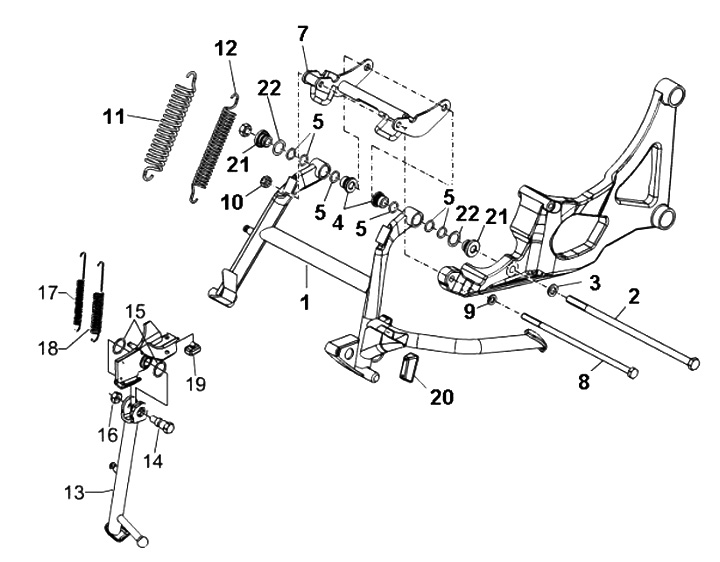 Pegas untuk penyangga samping -PIAGGIO- Vespa GT 250 (ZAPM45102), Vespa GT L 125 (ZAPM31100, ZAPM31101), Vespa GT L 200 (ZAPM31200), Vespa GTS 125 (ZAPM31300, ZAPMA3100, ZAPMA3200, ZAPMA3700), Vespa GTS 150 (ZAPMA3200, ZAPMA3100), Vespa GTS 250 (ZAPM45100