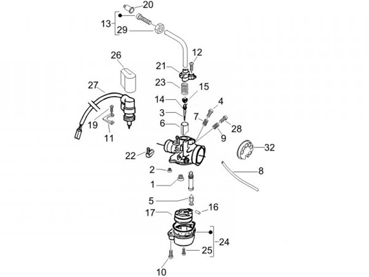 Ruang apung (dengan saluran pembuangan) -DELLORTO- Karburator PHVA Ø = 17,5 mm (mesin Piaggio)