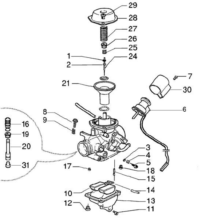 Katup throttle dengan diafragma -CIF- Vespa GTL 125-200, Piaggio Beverly 125-250, X8 125-200, X9 125-200, Gilera DNA 125-180, Runner VX/VXR 125-200, Aprilia Atlantic 125-200, Scarabeo 125-200