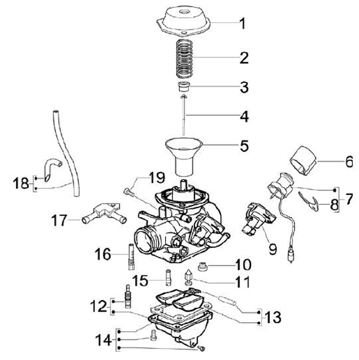 Katup throttle dengan diafragma -PIAGGIO- Vespa GTS 125, GTL 125-200, GTV 125, Piaggio Beverly 125-250, Carnaby 125, Aprilia Atlantic 125-250, Sport City 125-200