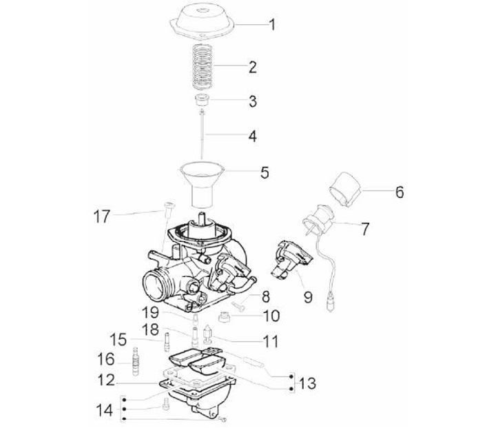 Slide throttle pegas -PIAGGIO- 50cc 4T/4V - Keihin - Vespa LX 50, S 50, Sprint 50, Primavera 50, Piaggio Fly 50, Piaggio Fly 50, Aprilia Scarabeo 50, SR 50 Motard