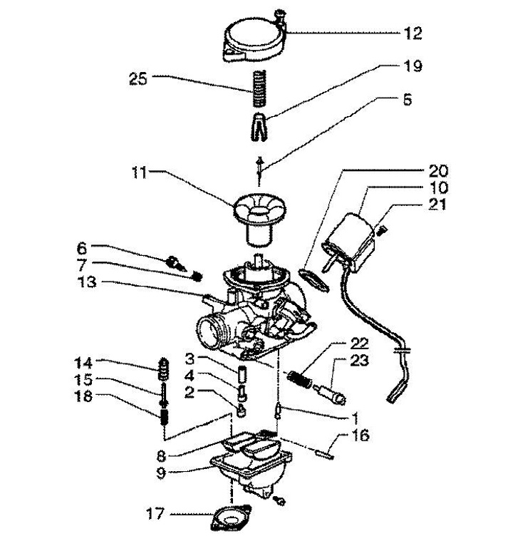 Geser throttle dengan diafragma -PIAGGIO- Vespa ET4 50, LX 50, LXV 50, S 50, Primavera 50, Sprint 50