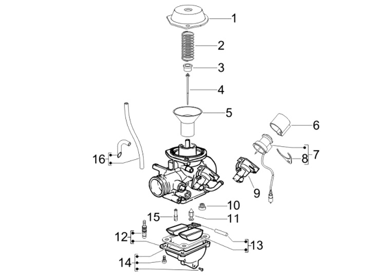 Katup throttle dengan diafragma -PIAGGIO- Vespa ET4 125, LX 125-150, LXV 125, S 125-150, Piaggio Fly 125-150, TPH 125, Liberty 125-200, Aprilia Mojito 125, SR Motard 125, Sport City One 125