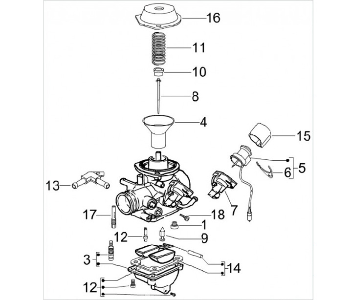 Katup throttle dengan diafragma -PIAGGIO- Vespa GTS 125, GTL 125-200, GTV 125, Piaggio Beverly 125-250, Carnaby 125, Aprilia Atlantic 125-250, Sport City 125-200