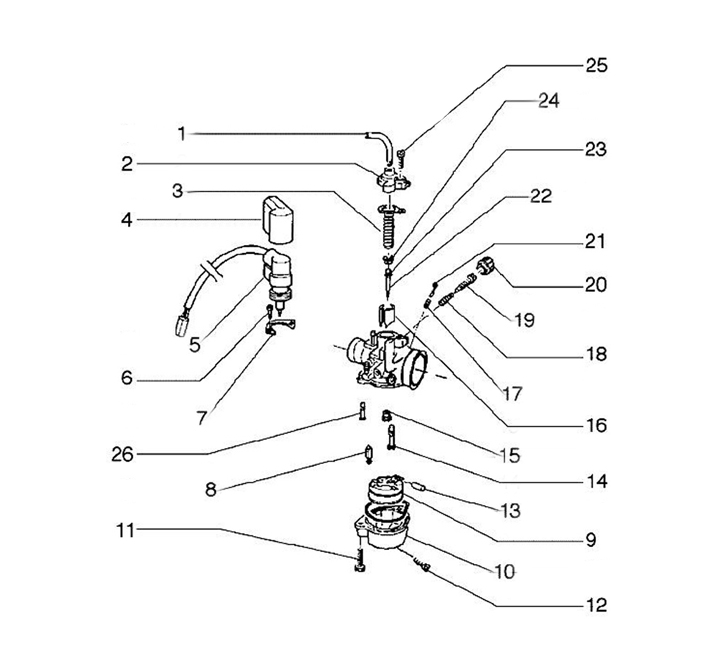 Ruang apung (dengan saluran pembuangan) -DELLORTO- Karburator PHVA Ø = 17,5 mm (mesin Piaggio)
