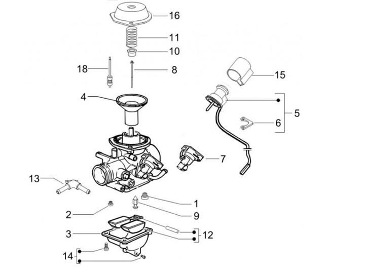 Katup throttle dengan diafragma -PIAGGIO- Vespa GTS 125, GTL 125-200, GTV 125, Piaggio Beverly 125-250, Carnaby 125, Aprilia Atlantic 125-250, Sport City 125-200