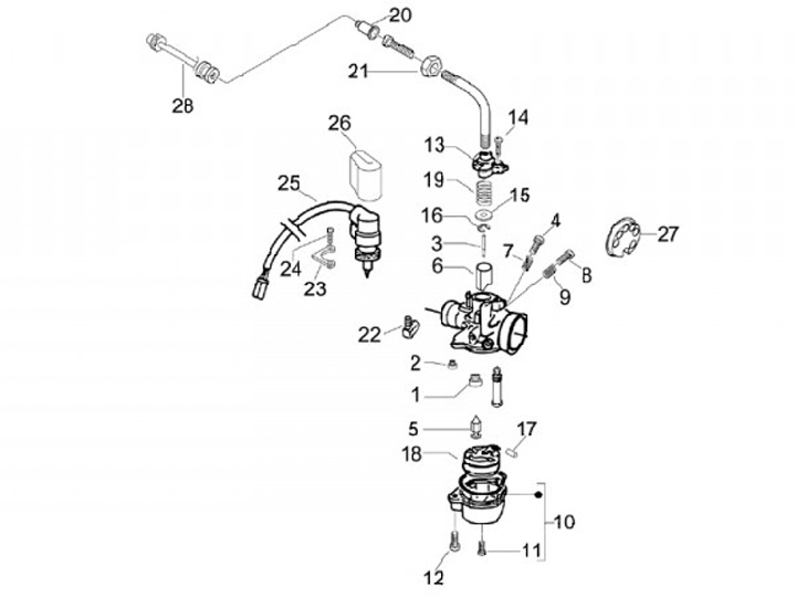 Ruang apung (dengan saluran pembuangan) -DELLORTO- Karburator PHVA Ø = 17,5 mm (mesin Piaggio)
