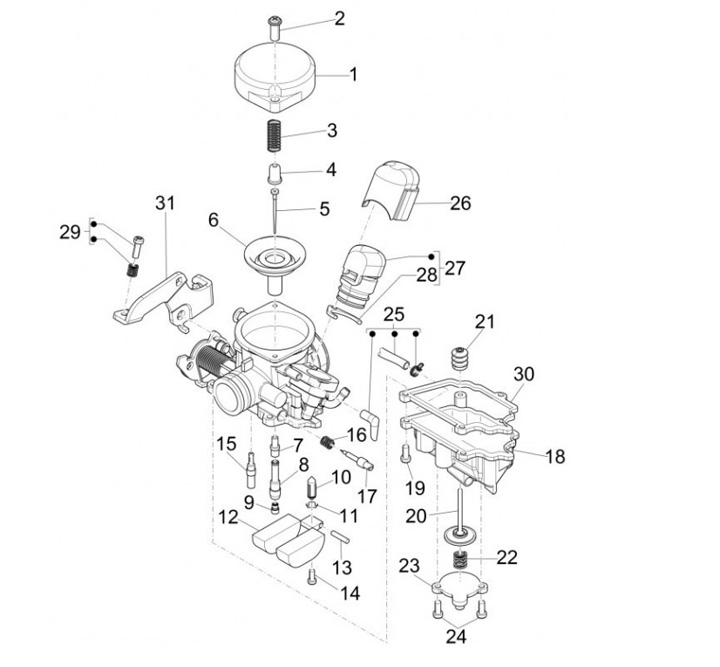 Geser throttle dengan diafragma -PIAGGIO- Vespa ET4 50, LX 50, LXV 50, S 50, Primavera 50, Sprint 50