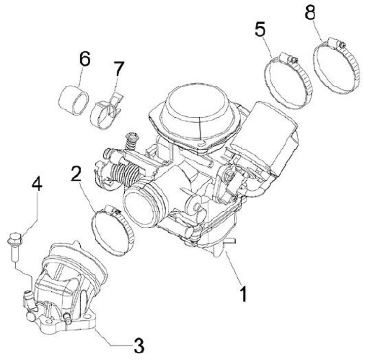 Intake manifold -PIAGGIO 125-250cc 4T 4V LC Leader/Quasar- 2 sambungan vakum- Aprilia Atlatic, Scarabeo, Vespa GTL, Derbi GP1, Gilera Runner VX, VXR, Piaggio Beverly, X8, X9