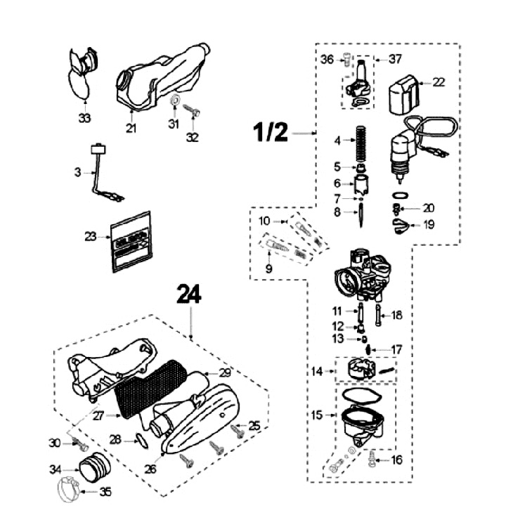 Karburator -DELLORTO 17.5mm PHVA TS- choke elektrik, Minarelli 50 ccm - AW = 23mm-