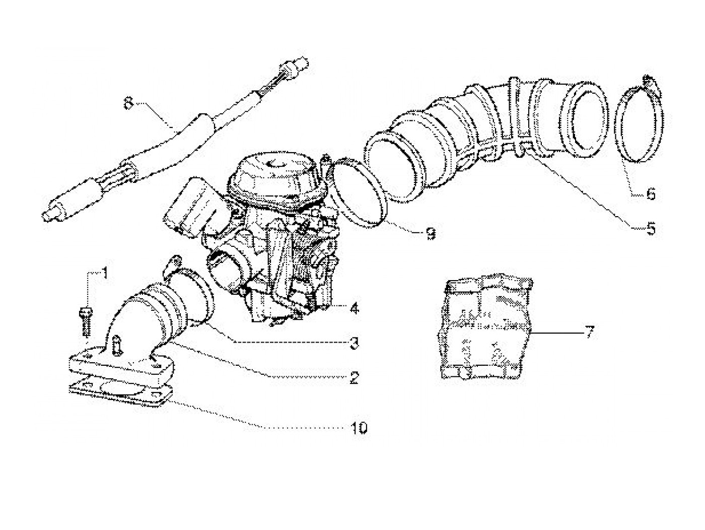 Intake manifold -PIAGGIO- 50cc 4T 2V- Vespa ET4 50 4T (ZAPC26), Piaggio Liberty 50 4T (ZAPC282, ZAPC422), ZIP II 50 4T (ZAPC250), Aprilia Scarabeo 50 4T (ZD4TG), Derbi Atlantis 50 4T (VTHAT1B1A) - 2 koneksi vakum