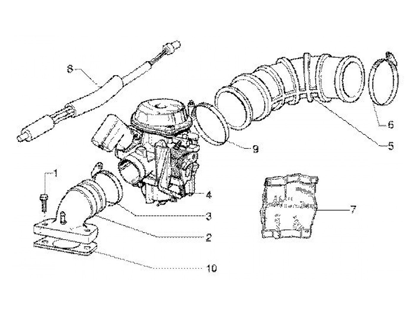 Intake manifold -PIAGGIO- 50cc 4T 2V- Vespa ET4 50 4T (ZAPC26), Piaggio Liberty 50 4T (ZAPC282, ZAPC422), ZIP II 50 4T (ZAPC250), Aprilia Scarabeo 50 4T (ZD4TG), Derbi Atlantis 50 4T (VTHAT1B1A) - 2 koneksi vakum