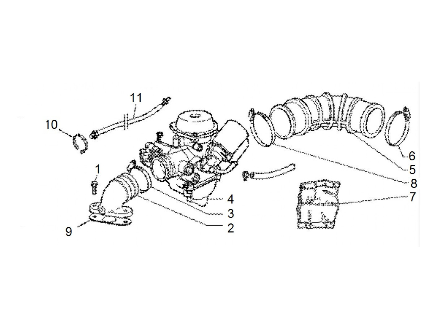 Karburator selang masuk/kotak saringan udara -PIAGGIO- Vespa ET4 (ZAPC19, Leader), LX, LXV, S125, S150, Aprilia Sportcity (ZD4SG), Piaggio Fly125/150, Liberty, Skipper 4T, TPH125 4T, X8 125/150