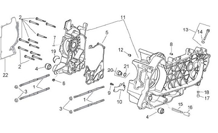 Gasket rumah mesin -PIAGGIO- Vespa GT 250 (ZAPM45102), Vespa GT L 125 (ZAPM31101), Vespa GT L 200 (ZAPM31200), Vespa GTS 125 (ZAPM31300), Vespa GTS 250 (ZAPM45100, ZAPM45101), Vespa GTS 300 (ZAPM45200, ZAPM45202, ZAPMA3300), Vespa GTS HPE 300 (ZAPMD310)