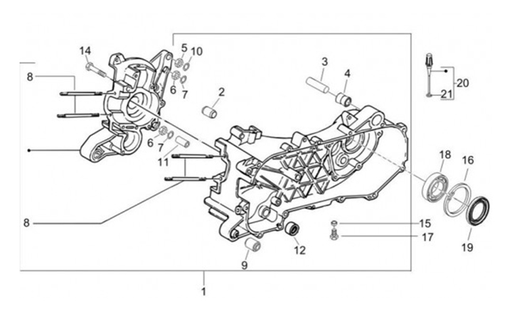 Rumah mesin -PIAGGIO- Vespa Primavera 50 (ZAPC53200), Vespa Sprint 50 (ZAPC53201), Gilera Stalker 50 (ZAPC40100, ZAPC40101)
