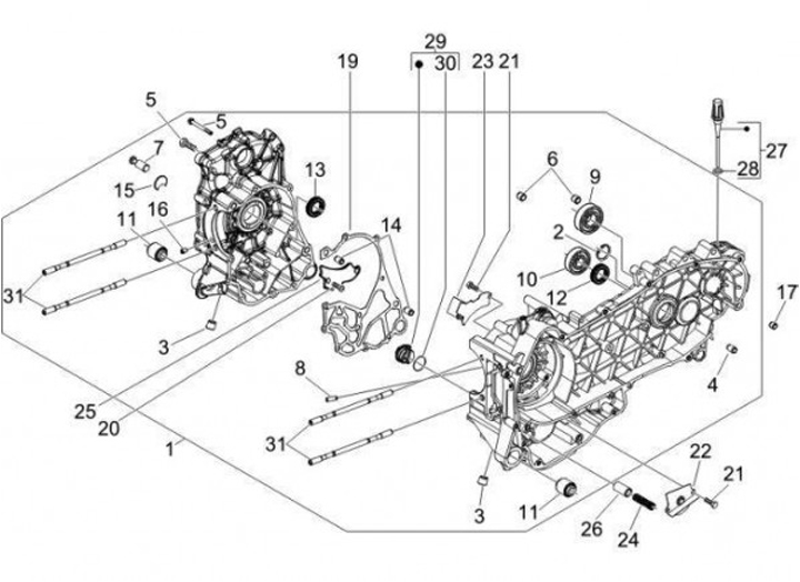Gasket rumah mesin -PIAGGIO- Vespa GT 250 (ZAPM45102), Vespa GT L 125 (ZAPM31101), Vespa GT L 200 (ZAPM31200), Vespa GTS 125 (ZAPM31300), Vespa GTS 250 (ZAPM45100, ZAPM45101), Vespa GTS 300 (ZAPM45200, ZAPM45202, ZAPMA3300), Vespa GTS HPE 300 (ZAPMD310)