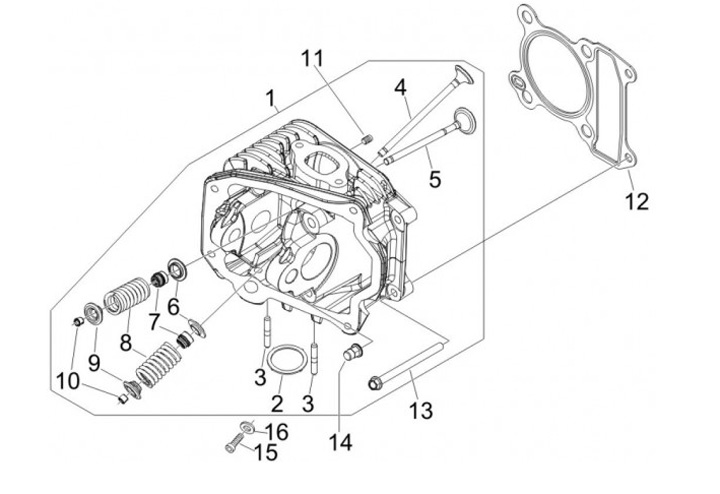 Kepala silinder -PIAGGIO- Vespa LX 50 (ZAPC38300, ZAPC38900), Vespa LXV 50 (ZAPC38902), Vespa Primavera 50 (ZAPC53300, ZAPC53302), Vespa S 50 (ZAPC38901), Vespa Sprint 50 (ZAPC53301, ZAPC53303), Vespa ET4 50 50 (ZAPC2610000001001), Aprilia Scarabeo 50 (ZD