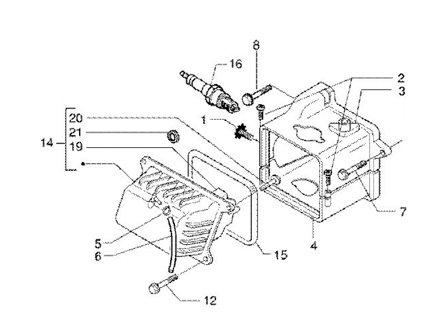 Penutup silinder atas -PIAGGIO- Vespa ET4 50, LX 50, LXV 50, Primavera 50, Sprint 50, Piaggio Fly 50-100, Free 100, Liberty 50, Zip II 50-100, Aprilia Scarabeo 50-100, Sport City One 50, Derbi Boulevard 50-100
