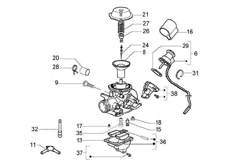 Katup throttle dengan diafragma -PIAGGIO- Vespa GTS 125, GTL 125-200, GTV 125, Piaggio Beverly 125-250, Carnaby 125, Aprilia Atlantic 125-250, Sport City 125-200