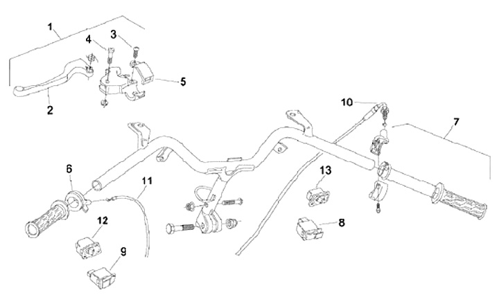 Tuas choke pada stang -PIAGGIO- Aprilia SR 50 (hingga tahun 1999) Stang Ø = 22mm