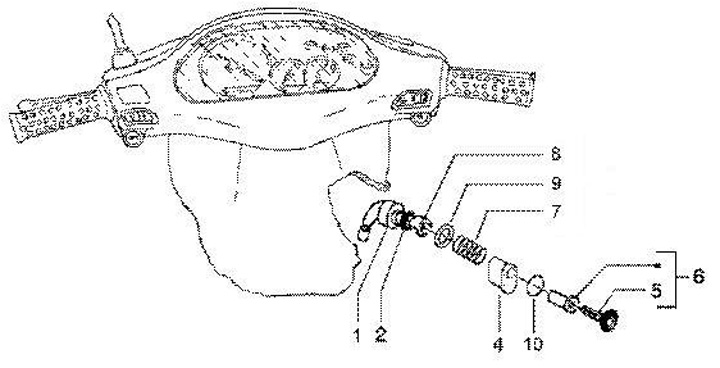 Bushing On-Off-Lock -PIAGGIO- Vespa GT 250 (ZAPM45102), Vespa GT L 125 (ZAPM31100, ZAPM31101), Vespa GT L 200 (ZAPM31200), Vespa GTS 125 (ZAPM31300), Vespa GTS 250 (ZAPM45100, ZAPM45101), Vespa GTS 300 (ZAPM45200, ZAPM45202), Vespa GTS Super 125 (ZAPM4530