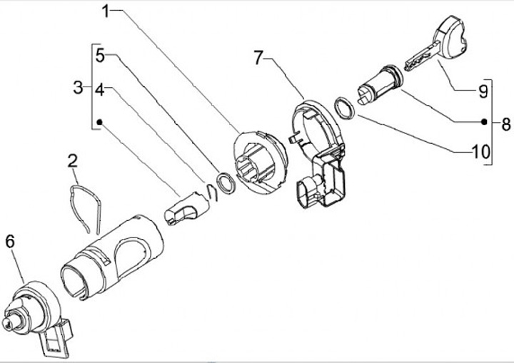 Bushing On-Off-Lock -PIAGGIO- Vespa GT 250 (ZAPM45102), Vespa GT L 125 (ZAPM31100, ZAPM31101), Vespa GT L 200 (ZAPM31200), Vespa GTS 125 (ZAPM31300), Vespa GTS 250 (ZAPM45100, ZAPM45101), Vespa GTS 300 (ZAPM45200, ZAPM45202), Vespa GTS Super 125 (ZAPM4530