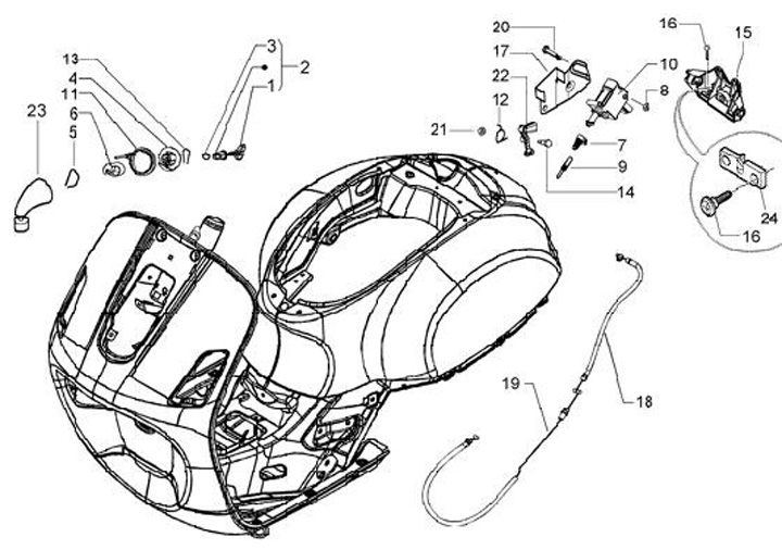 Kunci bangku kursi -PIAGGIO- Vespa GT 250 (ZAPM45102), Vespa GT L 125 (ZAPM31100, ZAPM31101), Vespa GT L 200 (ZAPM31200), Vespa GTS 125 (ZAPM31300, ZAPMA3100, ZAPMA3200, ZAPMA3700), Vespa GTS 150 (ZAPMA3200, ZAPMA3100), Vespa GTS 250 (ZAPM45100, ZAPM45101