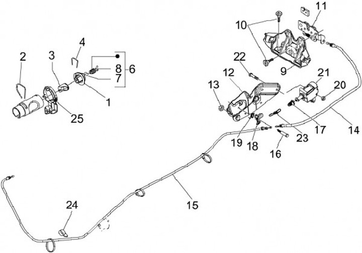 Kabel (pendek) untuk kunci bangku jok -PIAGGIO- Vespa GT 250 (ZAPM45102), Vespa GT L 125 (ZAPM31100, ZAPM31101), Vespa GT L 200 (ZAPM31200), Vespa GTS 125 (ZAPM31300, ZAPMA3100, ZAPMA3200, ZAPMA3700), Vespa GTS 150 (ZAPMA3200, ZAPMA3100), Vespa GTS 250 (Z
