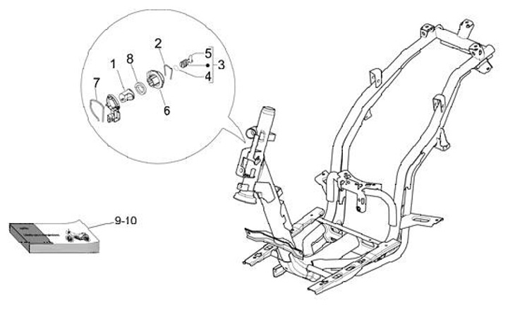 Bushing On-Off-Lock -PIAGGIO- Vespa GT 250 (ZAPM45102), Vespa GT L 125 (ZAPM31100, ZAPM31101), Vespa GT L 200 (ZAPM31200), Vespa GTS 125 (ZAPM31300), Vespa GTS 250 (ZAPM45100, ZAPM45101), Vespa GTS 300 (ZAPM45200, ZAPM45202), Vespa GTS Super 125 (ZAPM4530