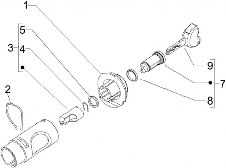 Bushing On-Off-Lock -PIAGGIO- Vespa GT 250 (ZAPM45102), Vespa GT L 125 (ZAPM31100, ZAPM31101), Vespa GT L 200 (ZAPM31200), Vespa GTS 125 (ZAPM31300), Vespa GTS 250 (ZAPM45100, ZAPM45101), Vespa GTS 300 (ZAPM45200, ZAPM45202), Vespa GTS Super 125 (ZAPM4530