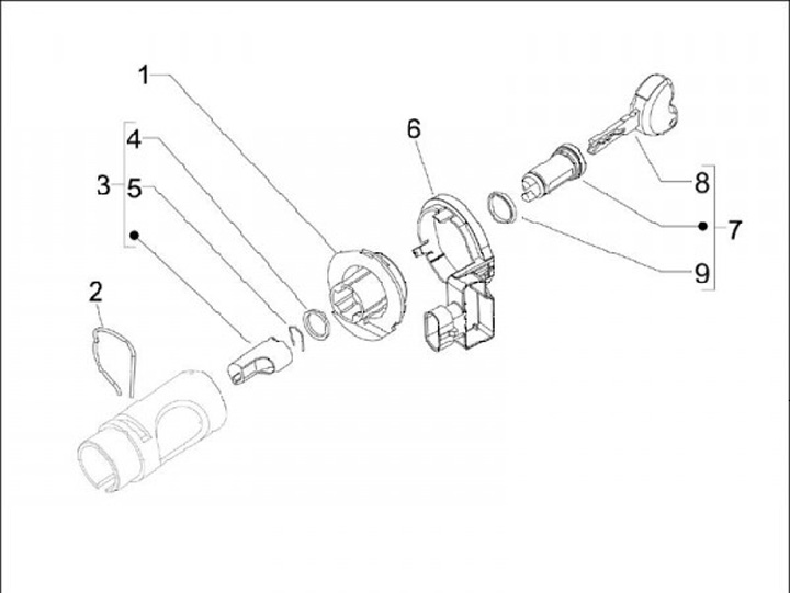 Bushing On-Off-Lock -PIAGGIO- Vespa GT 250 (ZAPM45102), Vespa GT L 125 (ZAPM31100, ZAPM31101), Vespa GT L 200 (ZAPM31200), Vespa GTS 125 (ZAPM31300), Vespa GTS 250 (ZAPM45100, ZAPM45101), Vespa GTS 300 (ZAPM45200, ZAPM45202), Vespa GTS Super 125 (ZAPM4530