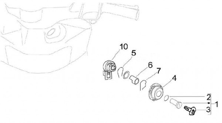 Bushing On-Off-Lock -PIAGGIO- Vespa GT 250 (ZAPM45102), Vespa GT L 125 (ZAPM31100, ZAPM31101), Vespa GT L 200 (ZAPM31200), Vespa GTS 125 (ZAPM31300), Vespa GTS 250 (ZAPM45100, ZAPM45101), Vespa GTS 300 (ZAPM45200, ZAPM45202), Vespa GTS Super 125 (ZAPM4530