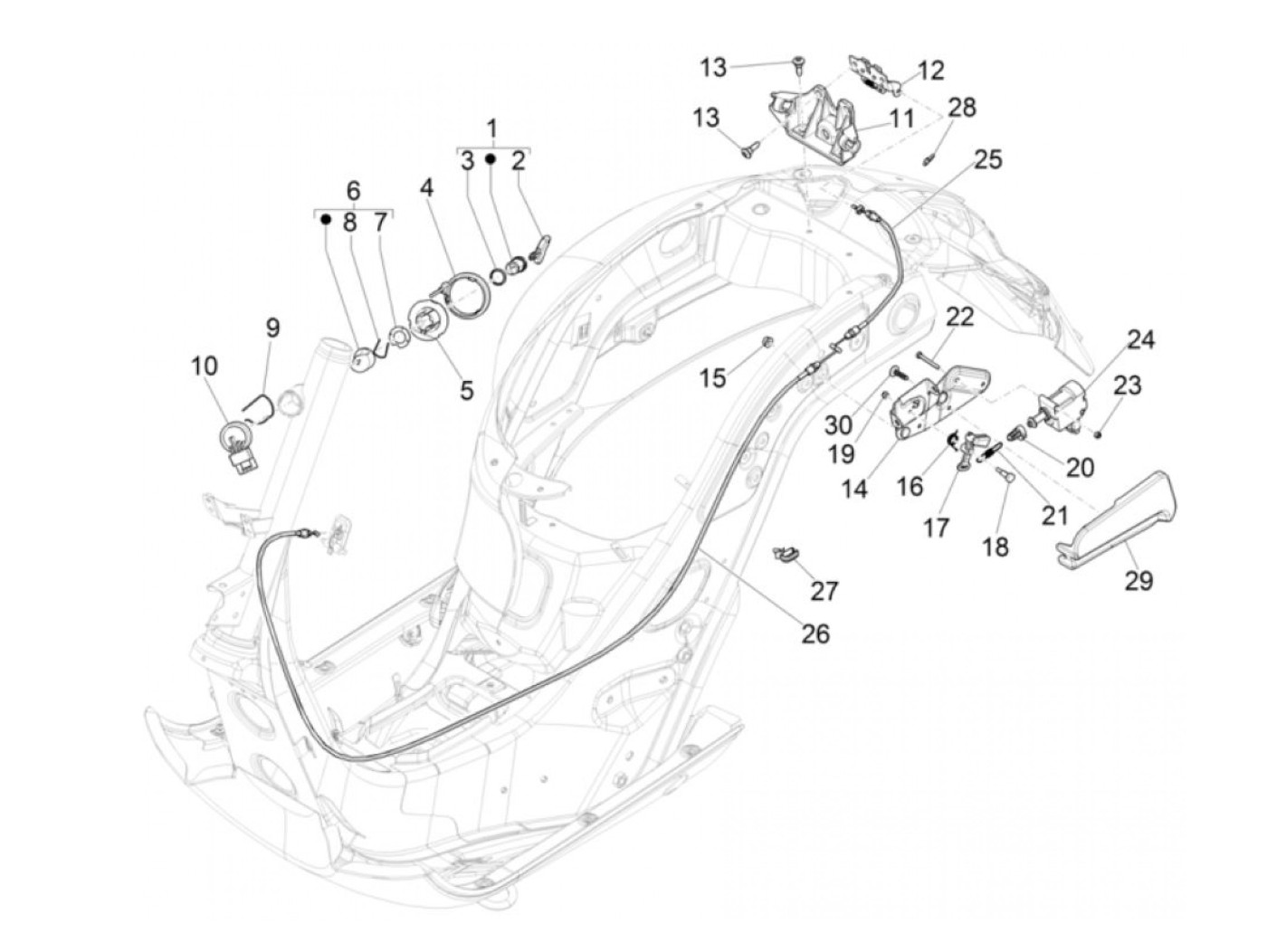 Kunci bangku kursi -PIAGGIO- Vespa GT 250 (ZAPM45102), Vespa GT L 125 (ZAPM31100, ZAPM31101), Vespa GT L 200 (ZAPM31200), Vespa GTS 125 (ZAPM31300, ZAPMA3100, ZAPMA3200, ZAPMA3700), Vespa GTS 150 (ZAPMA3200, ZAPMA3100), Vespa GTS 250 (ZAPM45100, ZAPM45101