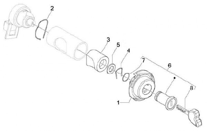 Bushing On-Off-Lock -PIAGGIO- Vespa GT 250 (ZAPM45102), Vespa GT L 125 (ZAPM31100, ZAPM31101), Vespa GT L 200 (ZAPM31200), Vespa GTS 125 (ZAPM31300), Vespa GTS 250 (ZAPM45100, ZAPM45101), Vespa GTS 300 (ZAPM45200, ZAPM45202), Vespa GTS Super 125 (ZAPM4530