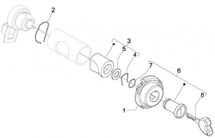 Bushing On-Off-Lock -PIAGGIO- Vespa GT 250 (ZAPM45102), Vespa GT L 125 (ZAPM31100, ZAPM31101), Vespa GT L 200 (ZAPM31200), Vespa GTS 125 (ZAPM31300), Vespa GTS 250 (ZAPM45100, ZAPM45101), Vespa GTS 300 (ZAPM45200, ZAPM45202), Vespa GTS Super 125 (ZAPM4530