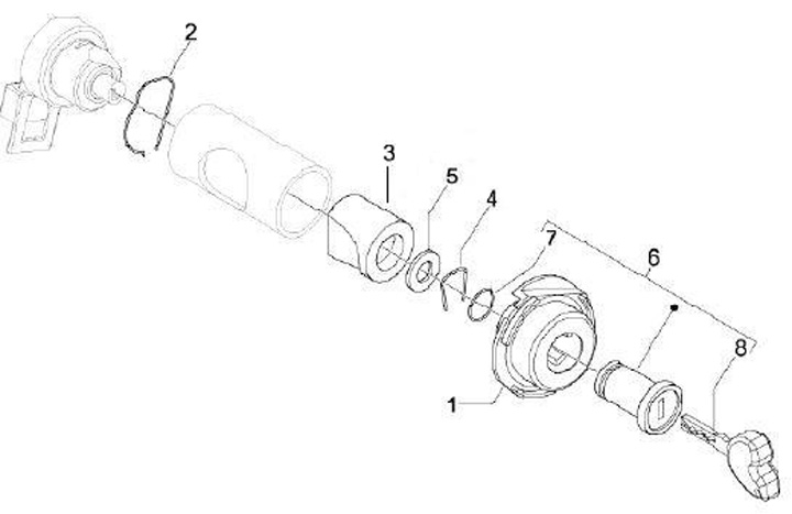 Bushing On-Off-Lock -PIAGGIO- Vespa GT 250 (ZAPM45102), Vespa GT L 125 (ZAPM31100, ZAPM31101), Vespa GT L 200 (ZAPM31200), Vespa GTS 125 (ZAPM31300), Vespa GTS 250 (ZAPM45100, ZAPM45101), Vespa GTS 300 (ZAPM45200, ZAPM45202), Vespa GTS Super 125 (ZAPM4530