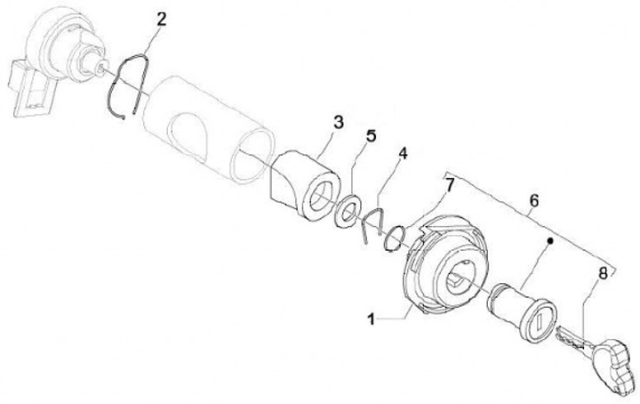 Bushing On-Off-Lock -PIAGGIO- Vespa GT 250 (ZAPM45102), Vespa GT L 125 (ZAPM31100, ZAPM31101), Vespa GT L 200 (ZAPM31200), Vespa GTS 125 (ZAPM31300), Vespa GTS 250 (ZAPM45100, ZAPM45101), Vespa GTS 300 (ZAPM45200, ZAPM45202), Vespa GTS Super 125 (ZAPM4530