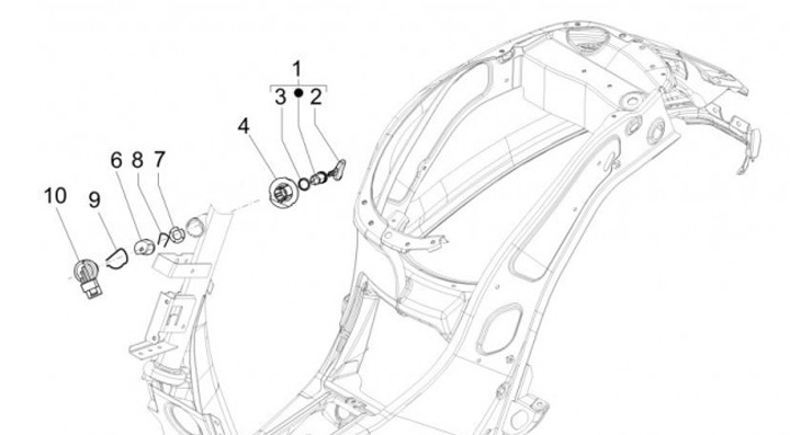 Sakelar pengapian -PIAGGIO- Gilera ICE, Runner50-200, Piaggio Fly, Hexagon GT-GTX, Hexagon LX-LXT, Liberty, NRG Power, Skipper, X7, X9, Zip (mulai tahun 2000), Vespa ET2, ET4, LX, LXV, S