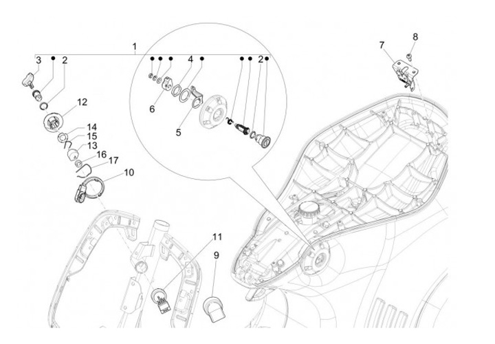 Karet kunci kontak -PIAGGIO- Vespa GT 250 (ZAPM45102), Vespa GT L 125 (ZAPM31101), Vespa GTS 125 (ZAPM31300), Vespa GTS 250 (ZAPM45100, ZAPM45101), Vespa GTS 300 (ZAPM45200, ZAPM45202), Vespa GTS Super 125 (ZAPM45300, ZAPM45301), Vespa GTS Super 300 (ZAPM