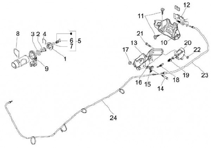 Kabel (pendek) untuk kunci bangku jok -PIAGGIO- Vespa GT 250 (ZAPM45102), Vespa GT L 125 (ZAPM31100, ZAPM31101), Vespa GT L 200 (ZAPM31200), Vespa GTS 125 (ZAPM31300, ZAPMA3100, ZAPMA3200, ZAPMA3700), Vespa GTS 150 (ZAPMA3200, ZAPMA3100), Vespa GTS 250 (Z