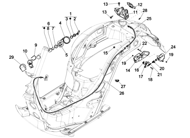 Kunci bangku kursi -PIAGGIO- Vespa GT 250 (ZAPM45102), Vespa GT L 125 (ZAPM31100, ZAPM31101), Vespa GT L 200 (ZAPM31200), Vespa GTS 125 (ZAPM31300, ZAPMA3100, ZAPMA3200, ZAPMA3700), Vespa GTS 150 (ZAPMA3200, ZAPMA3100), Vespa GTS 250 (ZAPM45100, ZAPM45101