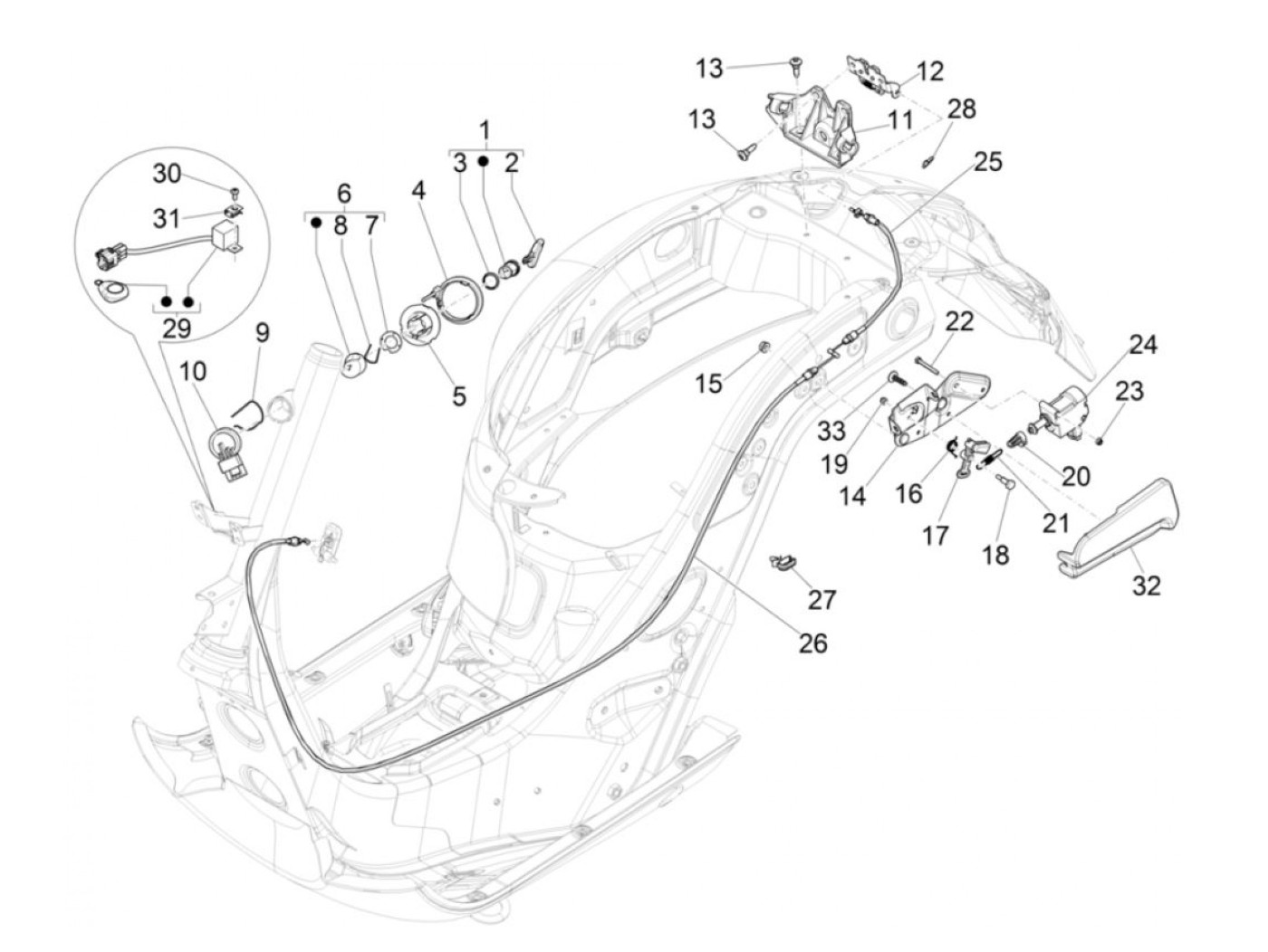 Kunci bangku kursi -PIAGGIO- Vespa GT 250 (ZAPM45102), Vespa GT L 125 (ZAPM31100, ZAPM31101), Vespa GT L 200 (ZAPM31200), Vespa GTS 125 (ZAPM31300, ZAPMA3100, ZAPMA3200, ZAPMA3700), Vespa GTS 150 (ZAPMA3200, ZAPMA3100), Vespa GTS 250 (ZAPM45100, ZAPM45101
