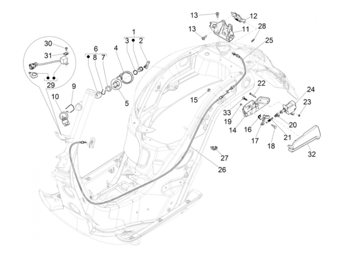 Kunci bangku kursi -PIAGGIO- Vespa GT 250 (ZAPM45102), Vespa GT L 125 (ZAPM31100, ZAPM31101), Vespa GT L 200 (ZAPM31200), Vespa GTS 125 (ZAPM31300, ZAPMA3100, ZAPMA3200, ZAPMA3700), Vespa GTS 150 (ZAPMA3200, ZAPMA3100), Vespa GTS 250 (ZAPM45100, ZAPM45101
