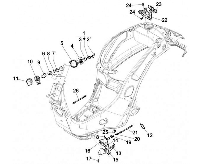 Soket On-Off-Lock -PIAGGIO- Vespa GTS 125 (ZAPMA3100, ZAPMA3200, ZAPMA3700), Vespa GTS 150 (ZAPMA3200, ZAPMA3100), Vespa GTS 300 (ZAPMA3300), Vespa GTS HPE 300 (ZAPMA3600, ZAPMD310), Vespa GTS Super 125 (ZAPMA3100, ZAPMA3200, ZAPMA3700), Vespa GTS Super