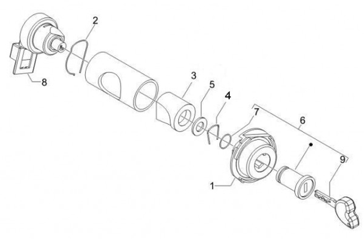 Bushing On-Off-Lock -PIAGGIO- Vespa GT 250 (ZAPM45102), Vespa GT L 125 (ZAPM31100, ZAPM31101), Vespa GT L 200 (ZAPM31200), Vespa GTS 125 (ZAPM31300), Vespa GTS 250 (ZAPM45100, ZAPM45101), Vespa GTS 300 (ZAPM45200, ZAPM45202), Vespa GTS Super 125 (ZAPM4530