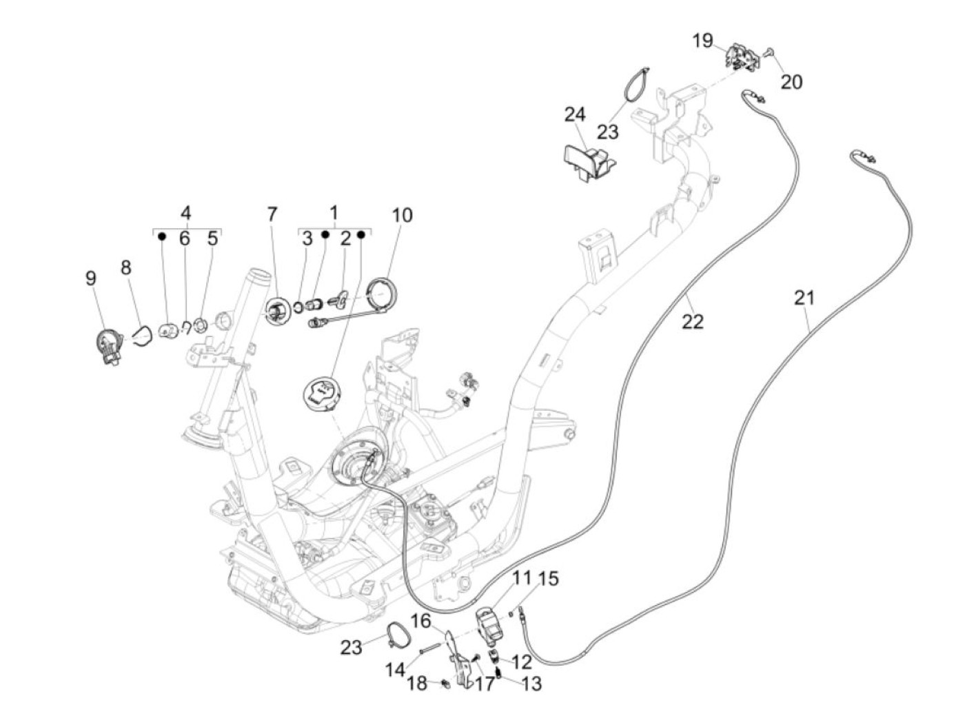 Soket On-Off-Lock -PIAGGIO- Vespa GTS 125 (ZAPMA3100, ZAPMA3200, ZAPMA3700), Vespa GTS 150 (ZAPMA3200, ZAPMA3100), Vespa GTS 300 (ZAPMA3300), Vespa GTS HPE 300 (ZAPMA3600, ZAPMD310), Vespa GTS Super 125 (ZAPMA3100, ZAPMA3200, ZAPMA3700), Vespa GTS Super