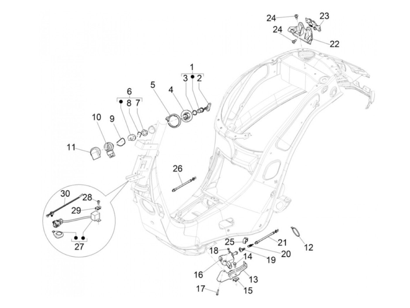 Soket On-Off-Lock -PIAGGIO- Vespa GTS 125 (ZAPMA3100, ZAPMA3200, ZAPMA3700), Vespa GTS 150 (ZAPMA3200, ZAPMA3100), Vespa GTS 300 (ZAPMA3300), Vespa GTS HPE 300 (ZAPMA3600, ZAPMD310), Vespa GTS Super 125 (ZAPMA3100, ZAPMA3200, ZAPMA3700), Vespa GTS Super