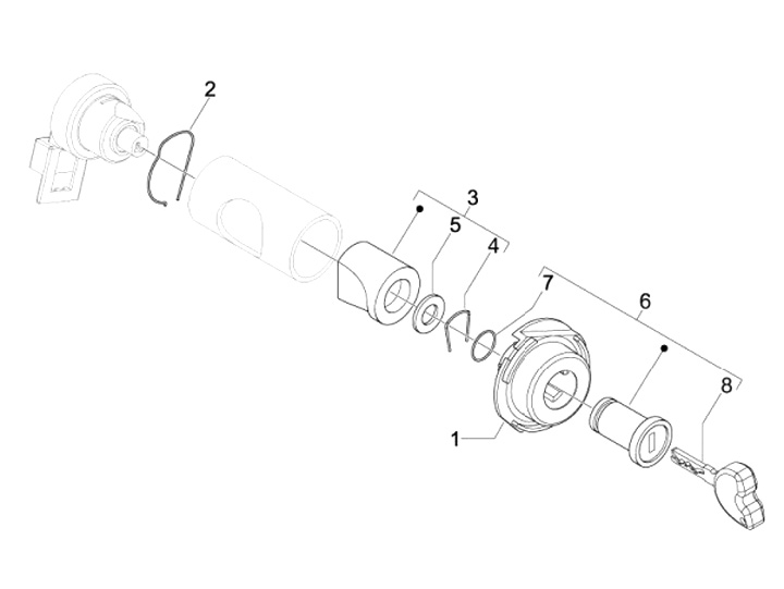 Bushing On-Off-Lock -PIAGGIO- Vespa GT 250 (ZAPM45102), Vespa GT L 125 (ZAPM31100, ZAPM31101), Vespa GT L 200 (ZAPM31200), Vespa GTS 125 (ZAPM31300), Vespa GTS 250 (ZAPM45100, ZAPM45101), Vespa GTS 300 (ZAPM45200, ZAPM45202), Vespa GTS Super 125 (ZAPM4530