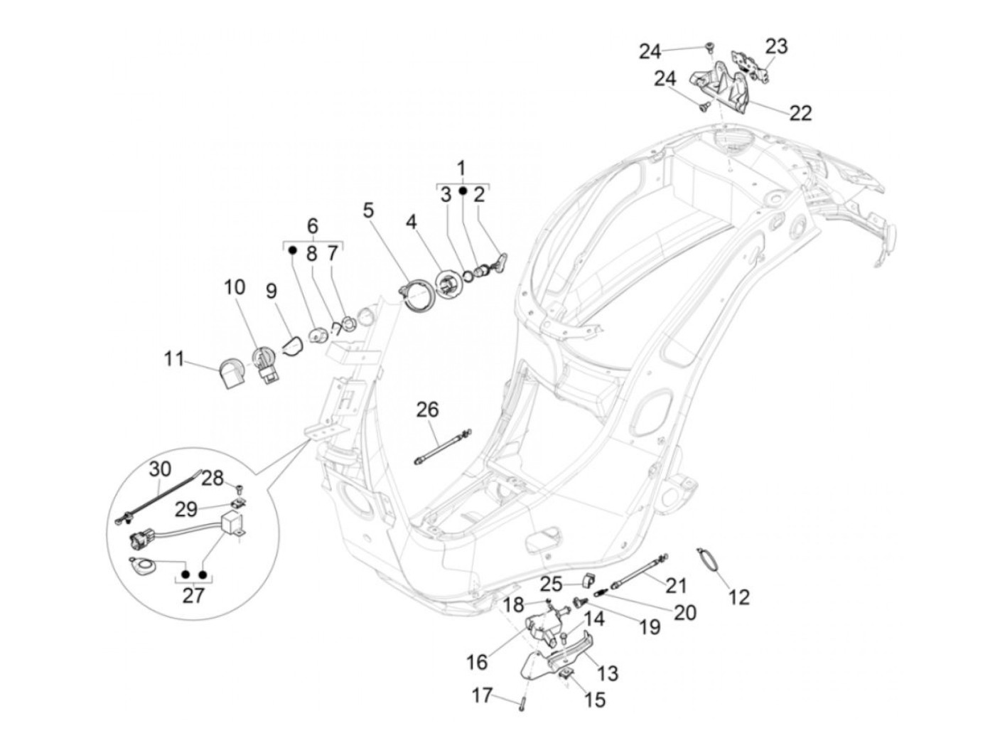 Karet kunci kontak -PIAGGIO- Vespa GT 250 (ZAPM45102), Vespa GT L 125 (ZAPM31101), Vespa GTS 125 (ZAPM31300), Vespa GTS 250 (ZAPM45100, ZAPM45101), Vespa GTS 300 (ZAPM45200, ZAPM45202), Vespa GTS Super 125 (ZAPM45300, ZAPM45301), Vespa GTS Super 300 (ZAPM