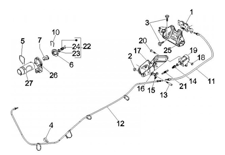Kabel (pendek) untuk kunci bangku jok -PIAGGIO- Vespa GT 250 (ZAPM45102), Vespa GT L 125 (ZAPM31100, ZAPM31101), Vespa GT L 200 (ZAPM31200), Vespa GTS 125 (ZAPM31300, ZAPMA3100, ZAPMA3200, ZAPMA3700), Vespa GTS 150 (ZAPMA3200, ZAPMA3100), Vespa GTS 250 (Z